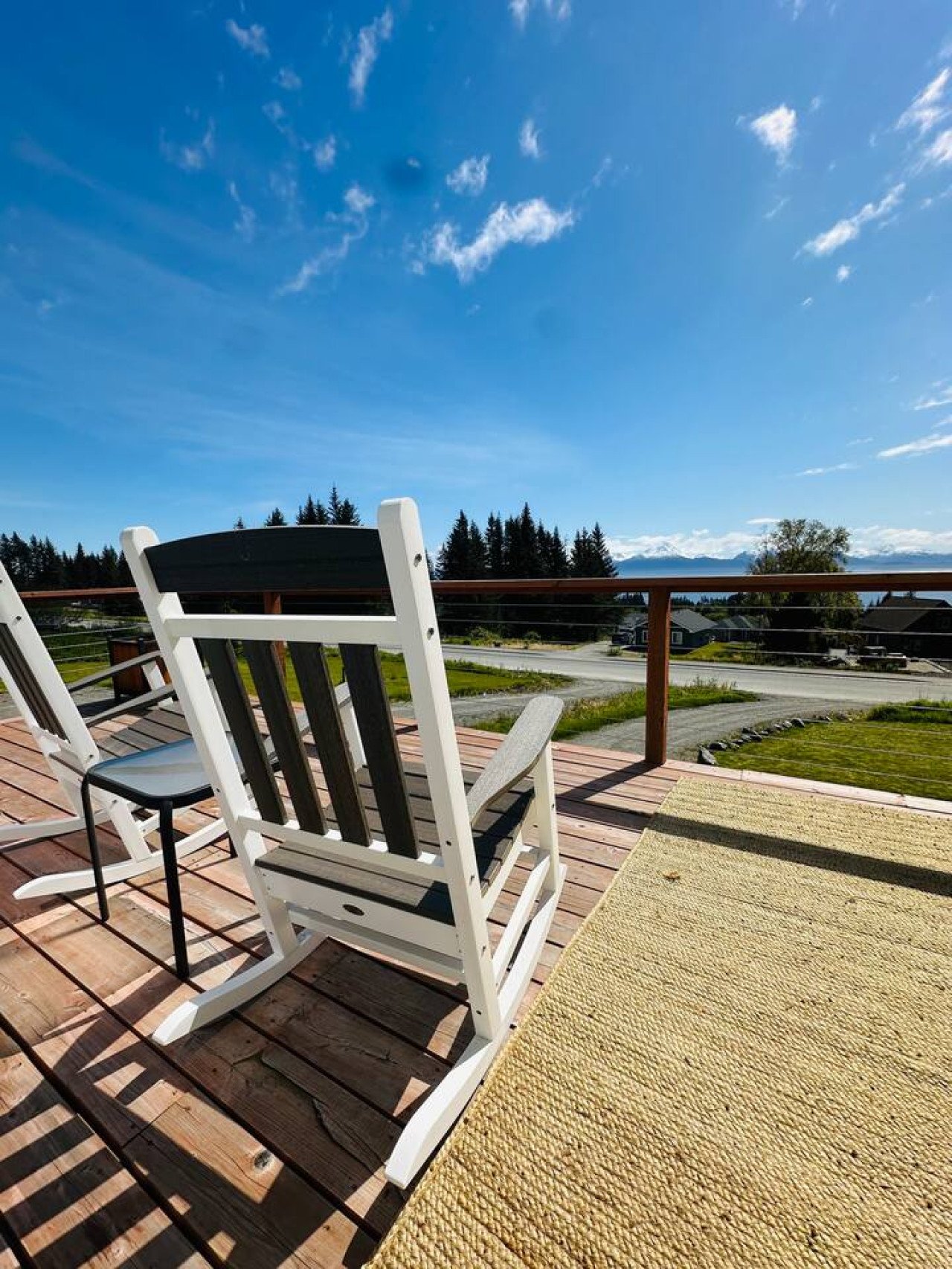 The highlight of the property is undoubtedly the expansive wrap-around deck, where you can unwind and take in panoramic vistas of Kachemak Bay and the surrounding mountains.